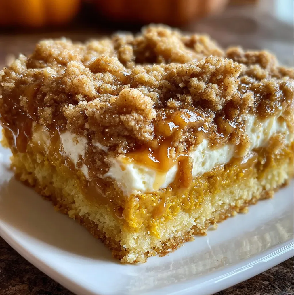 Fall in love with autumn all over again with this Gooey Pumpkin Crumble Cake! 🎃🍁A delicious hybrid between pumpkin pie and coffee cake, this dessert features a buttery cake base, …