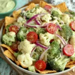 - Toss gently but thoroughly until all the veggies are evenly coated in the creamy dressing.