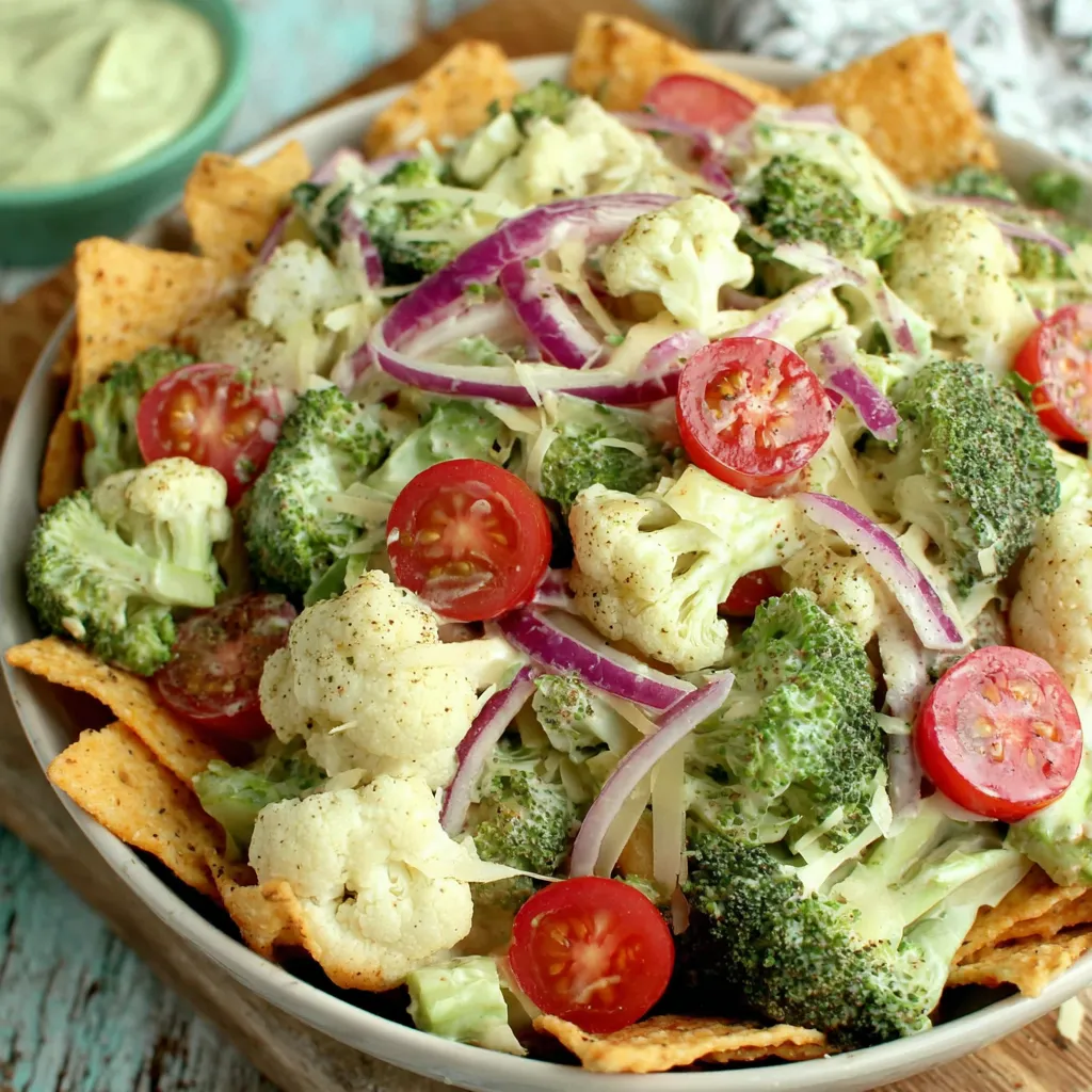 Keywords: Christmas salad, holiday salad, broccoli cauliflower salad, creamy salad, make-ahead side, festive salad