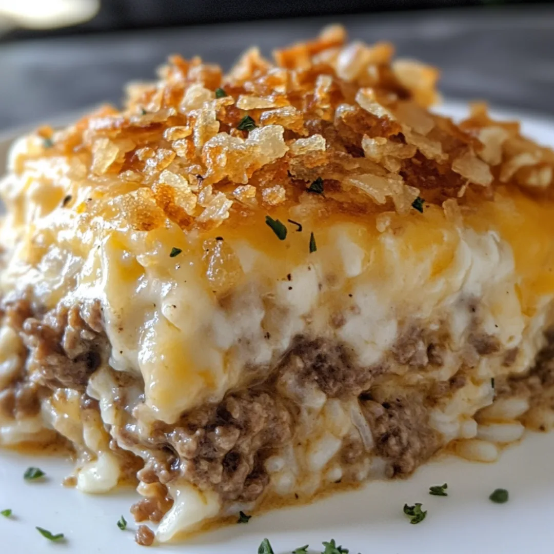 This French Onion Ground Beef and Rice Casserole is everything you love about classic comfort food hearty, creamy, cheesy, and packed with rich flavor. With just a handful of pantry staples, it transforms into a dish that feels like home on every bite. Whether you’re feeding the family on a busy weeknight, prepping ahead for guests, or simply craving something warm and satisfying, this casserole delivers every time. Serve it straight from the oven, watch the cheese bubble and melt, and enjoy the cozy aroma that fills your kitchen it’s comfort made simple.