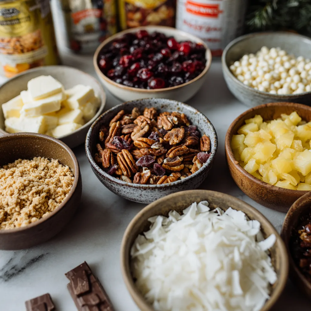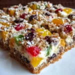 Bring the holiday spirit to your dessert table with these Fruit Cake 7-Layer Bars! A festive twist on the classic magic cookie bars, these colorful treats combine a buttery graham cracker crust with layers of sweetened condensed milk, candied fruit, coconut, crunchy nuts, and two kinds of chocolate chips. Every bite bursts with chewy, nutty, and chocolaty holiday flavor perfect for parties or gifting.