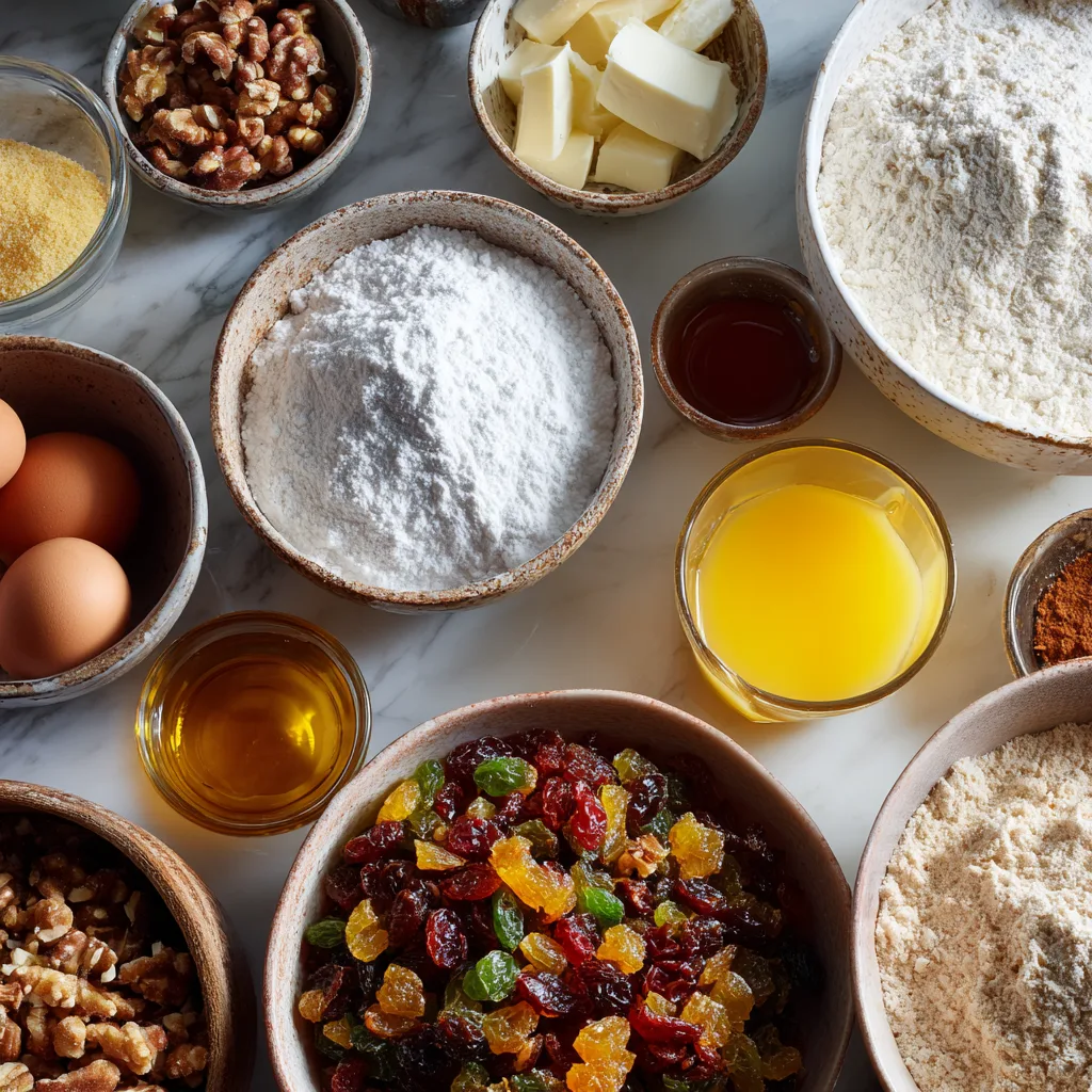 2. Prepare the Fruit Mixture: In a large bowl, combine the mixed dried fruit and nuts. Toss with a tablespoon of flour to help prevent them from sinking during baking.
