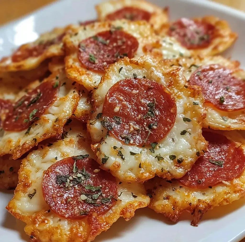 Keywords: pizza chips, keto snacks, low-carb appetizers, cheese crisps, mozzarella chips