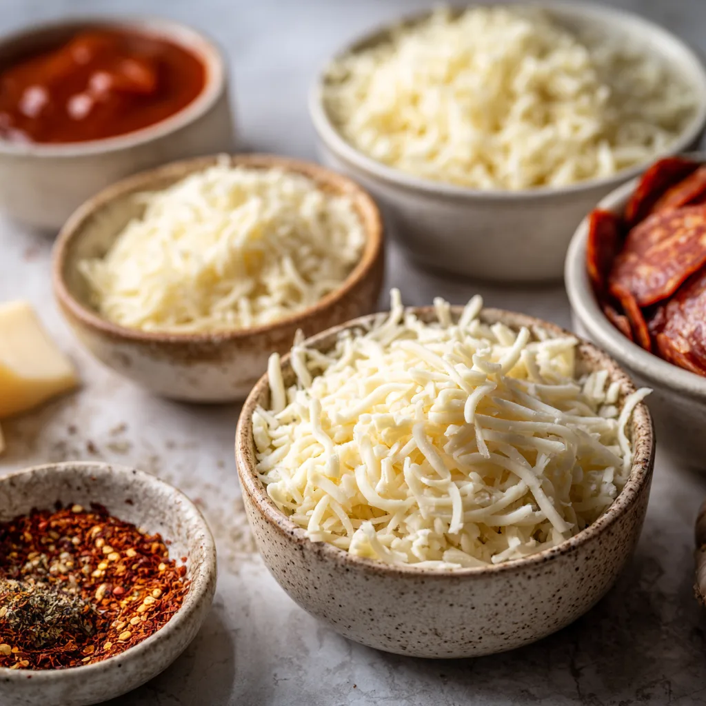 - Mix the Cheeses: In a bowl, combine mozzarella, Parmesan, and Italian seasoning. Add red pepper flakes if you like it spicy.