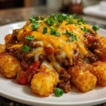 Sloppy Joe Tater Tot Casserole is the ultimate comfort-food mash-up: tangy, saucy beef layered with melty cheddar and topped with a blanket of golden, crunchy tater tots. It’s a family-friendly dinner that feels nostalgic yet exciting, perfect for busy weeknights or casual weekend gatherings.