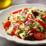 This Zesty Feta & Herb Orzo Salad is a fresh, delicious, and endlessly versatile dish that brings Mediterranean sunshine to your table. Whether enjoyed as a simple lunch, a vibrant side, or a flavorful potluck favorite, it’s guaranteed to become a staple in your recipe rotation. Enjoy every bright, herb-packed bite!