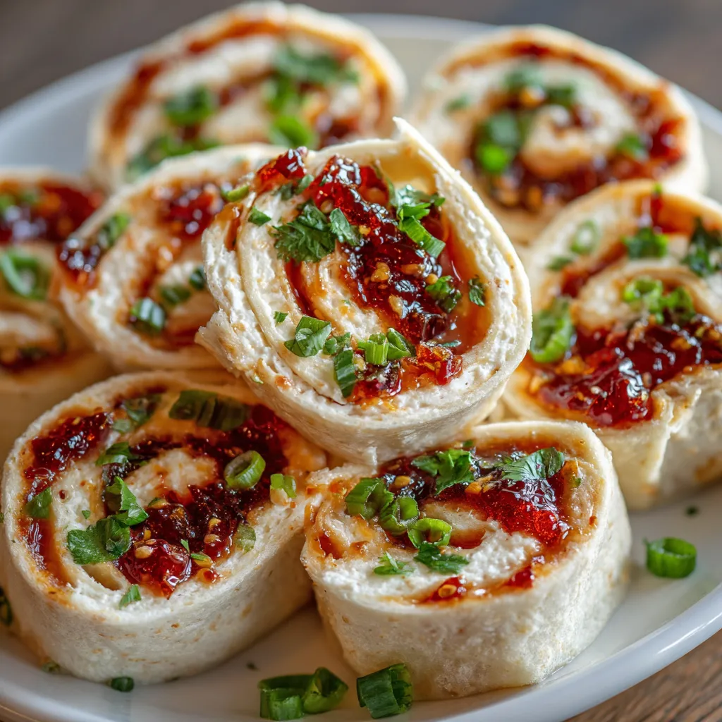 These Sweet Heat Pepper Jelly Pinwheels are a delightful combination of spicy and sweet flavors wrapped in a soft flour tortilla. Perfect for gatherings or a quick snack!